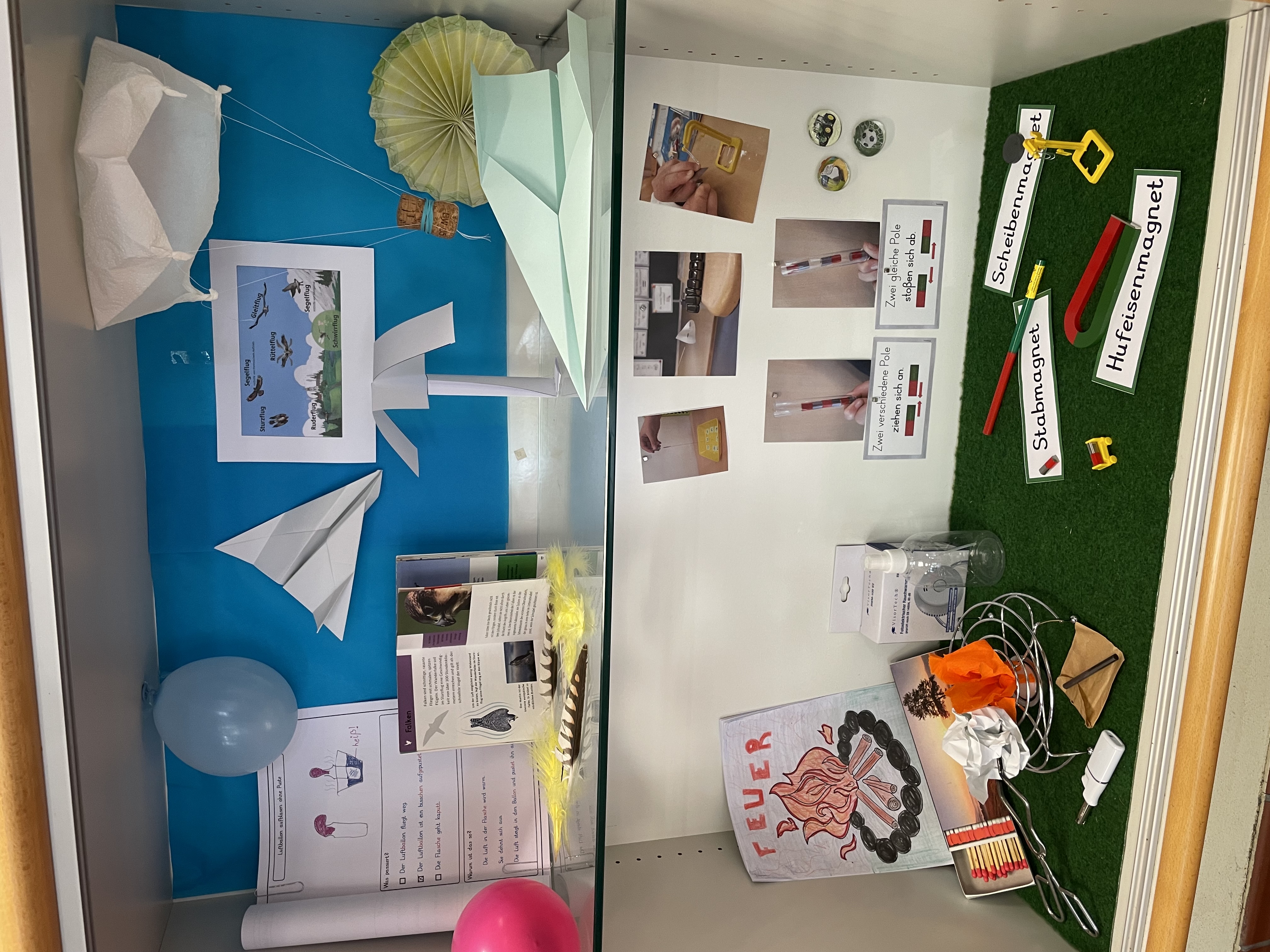 In diesem Jahr war das Thema unserer Projektwoche naturwissenschaftlich. Die Kinder haben sich in vier Gruppen zu je einem Schwerpunkt Wasser, Feuer, Luft oder Magnetismus eingewählt und eifrig experimentiert, gelernt, gebastelt und gestaunt.