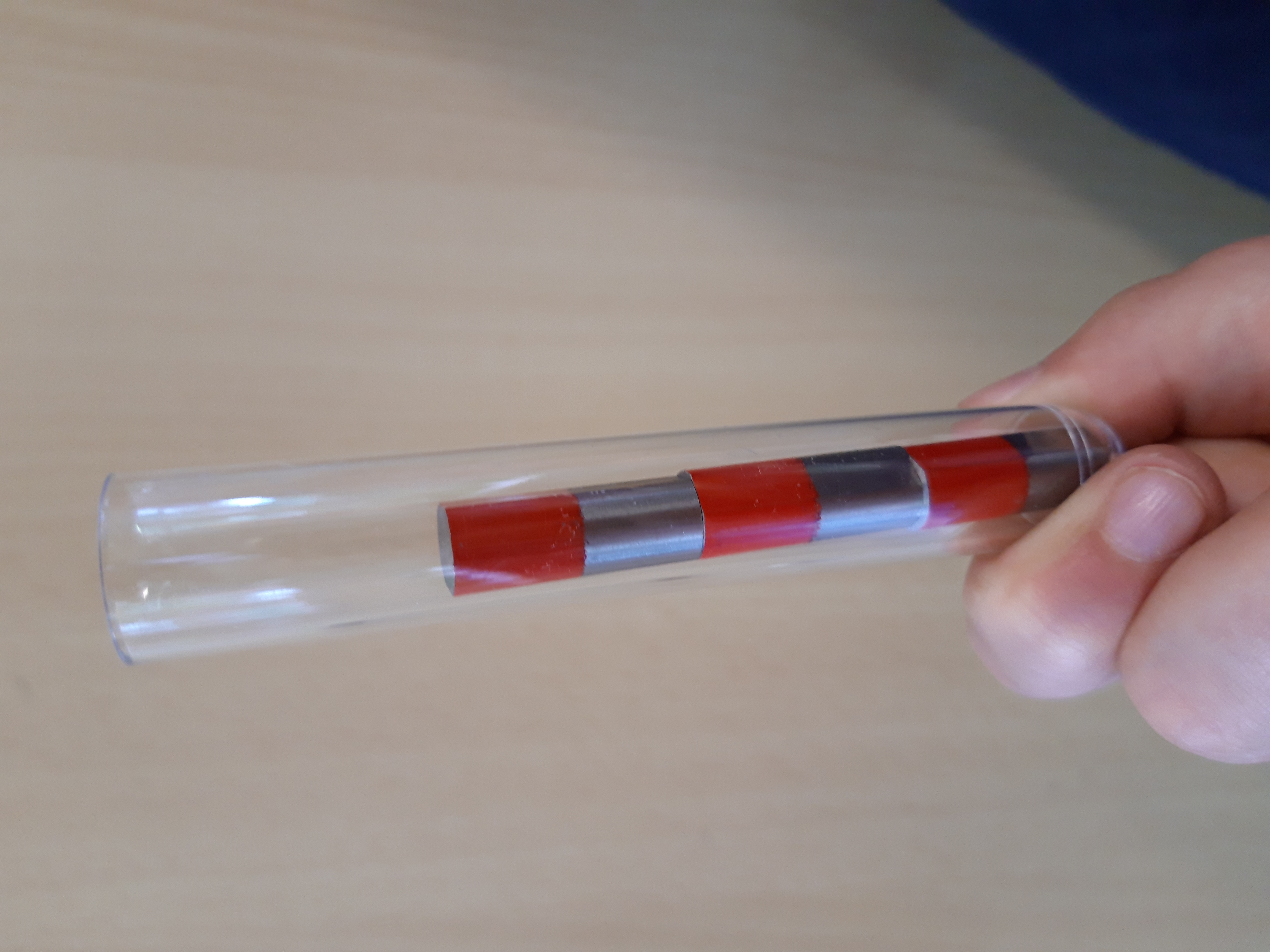 Wir haben herausgefunden, dass man eine Stricknadel magnetisch machen kann, wenn man einen starken Magneten hat.