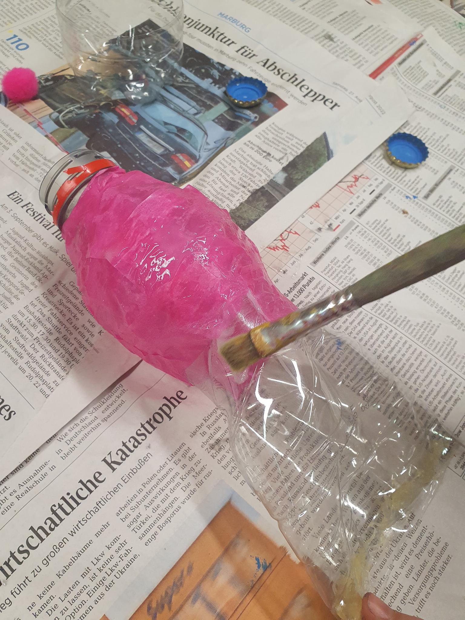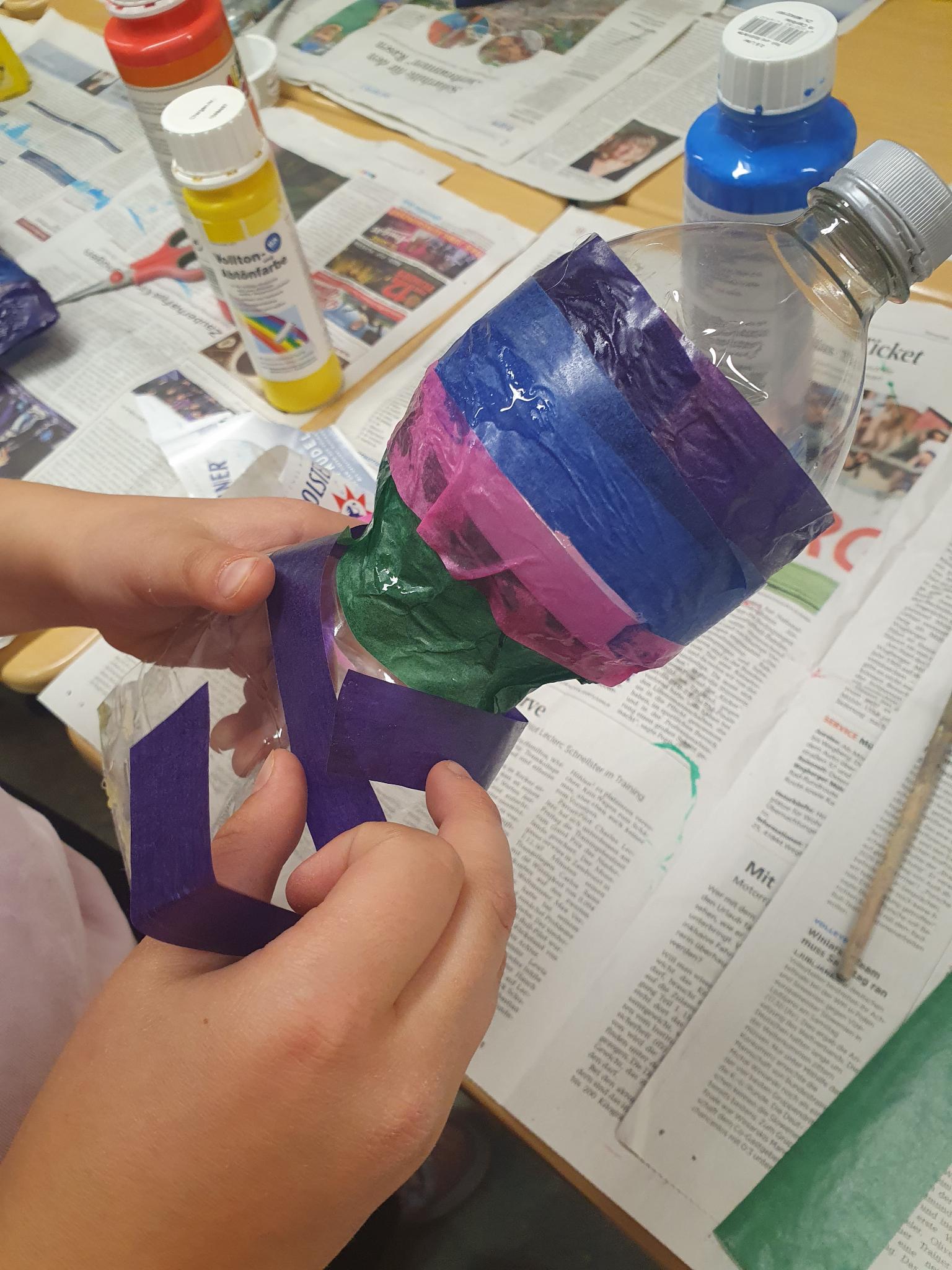 Um das zu verdeutlichen, haben die Kinder aus PET-Flaschen (die nun nicht mehr in Gewässern landen) schöne Fische gestaltet, die in der Vitrine unserer Schule bewundert werden können.