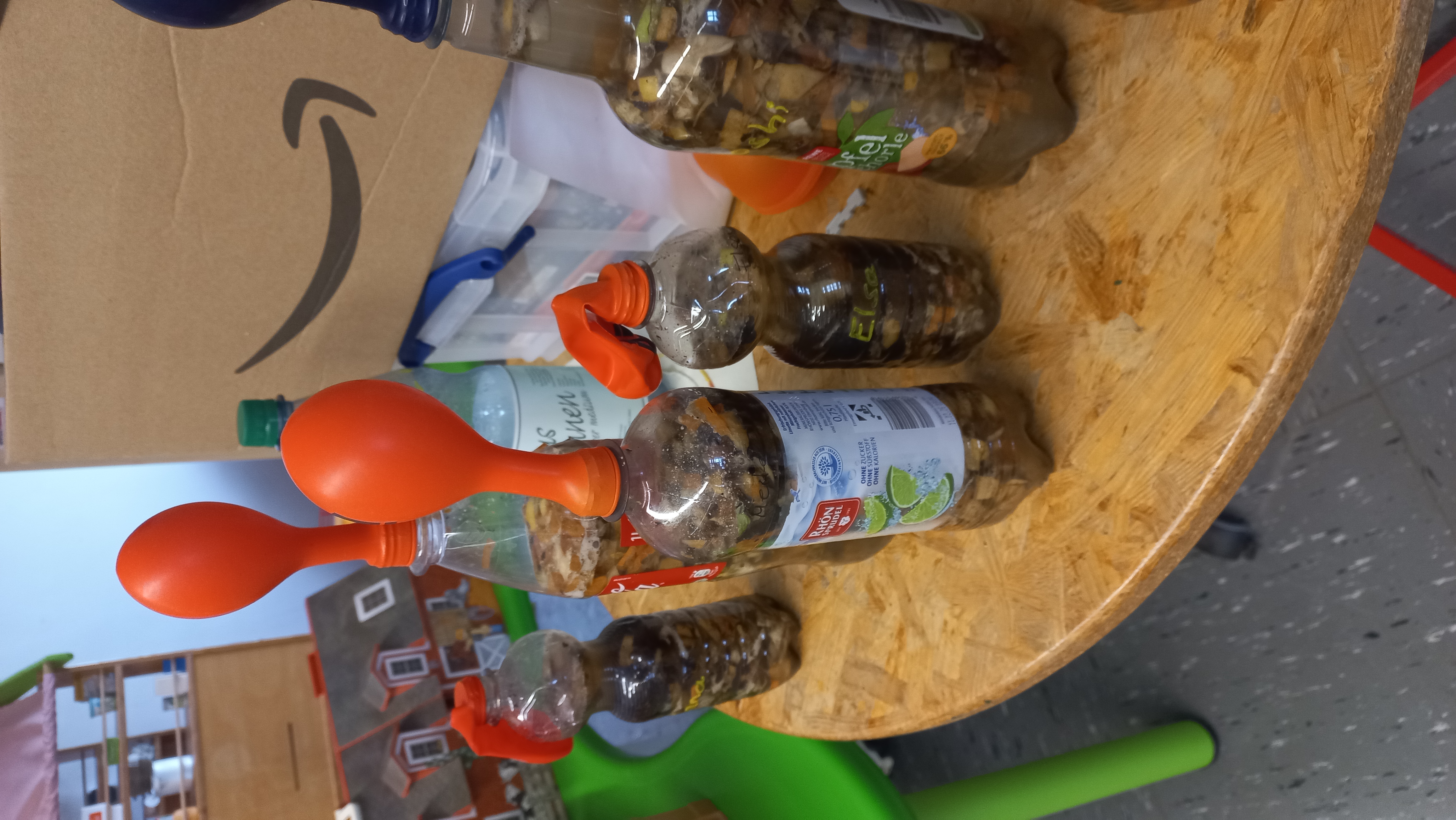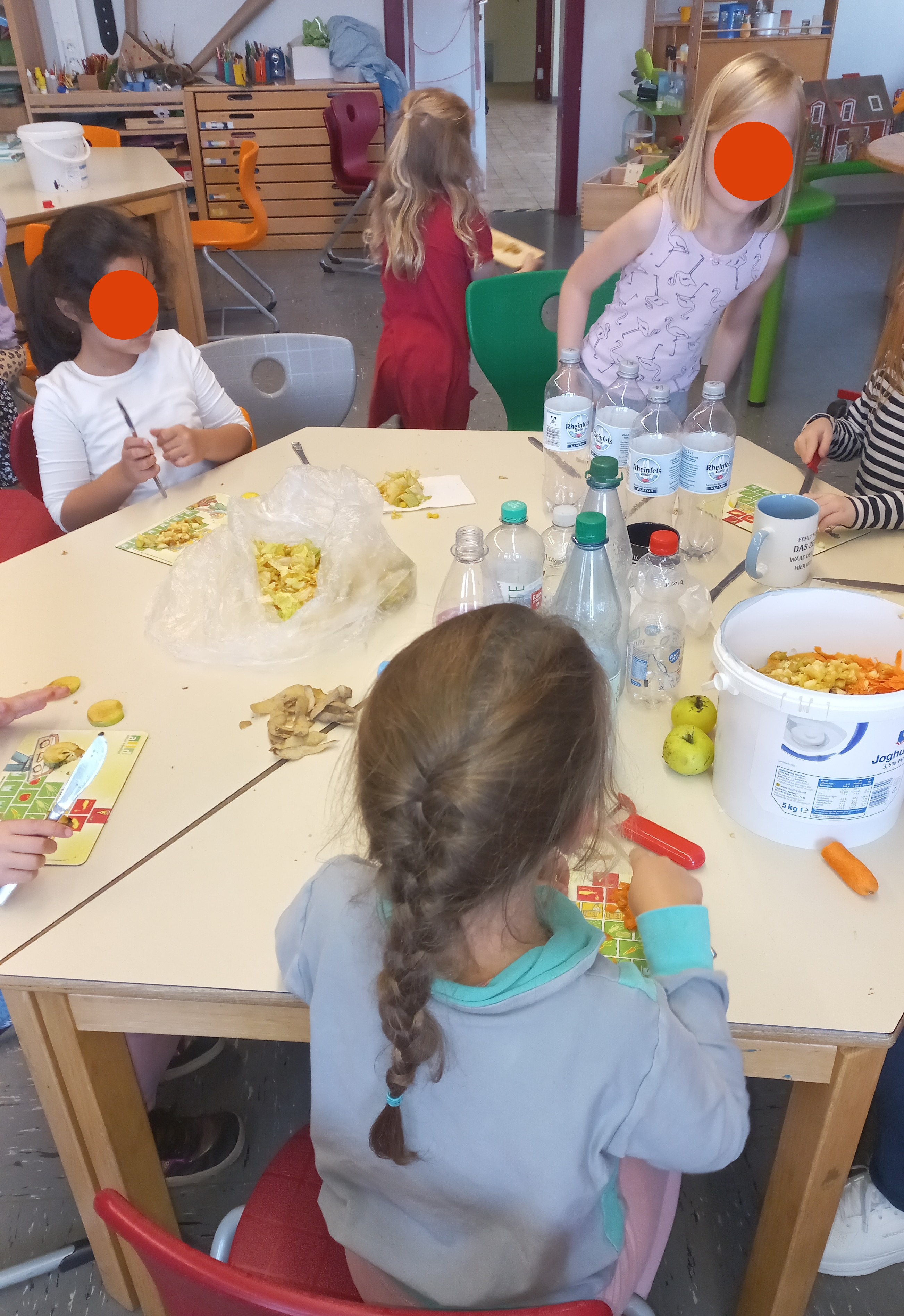 Wir bauen eine Biogasanlage. Hier schnippeln wir die Zutaten.